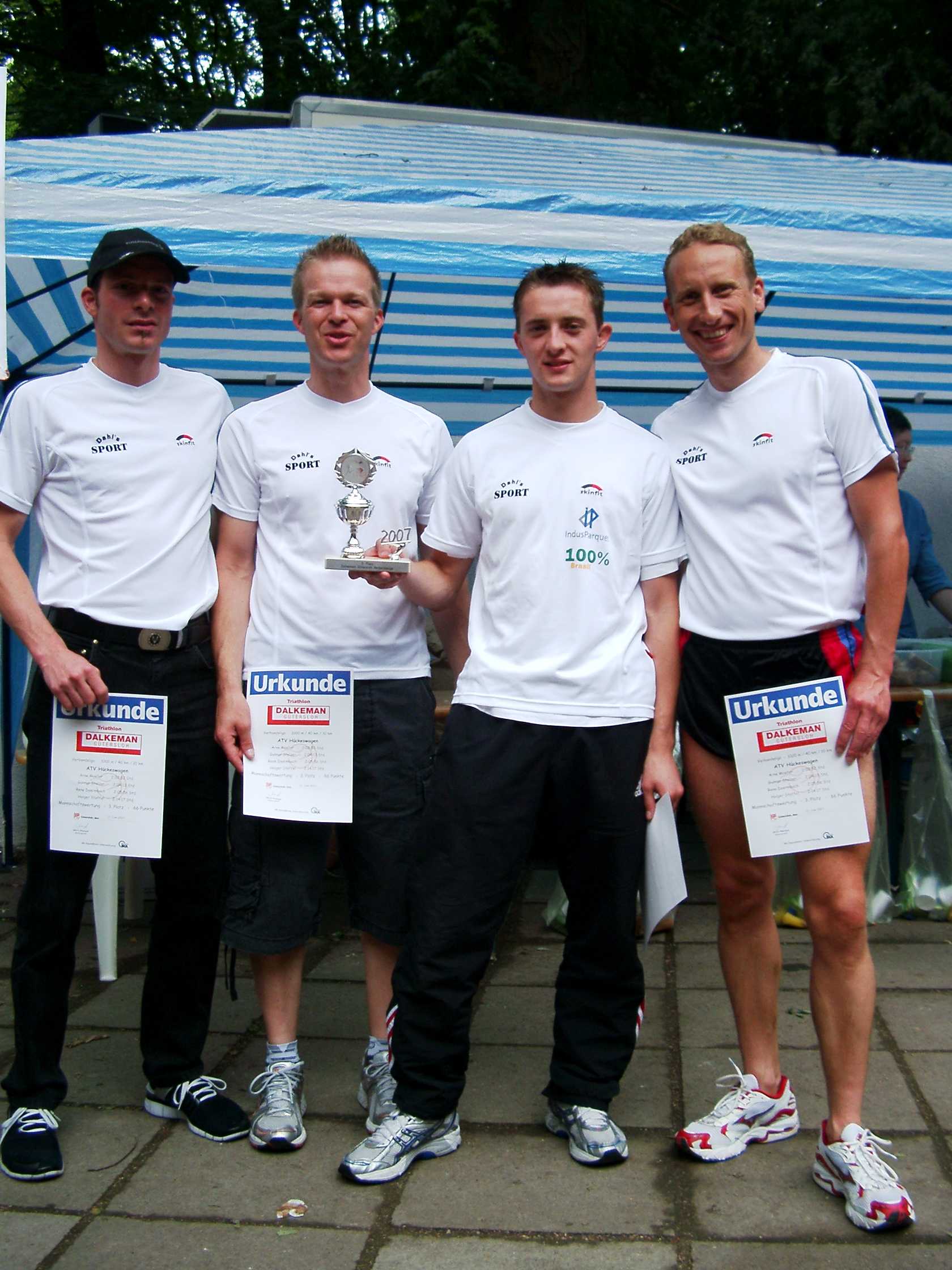Arne Möller, Gunnar Stelzer, Rene Dörmbach und Holger Stoffel brachten ein Top-Ergebnis mit nach Hause. Diese 4 starten als Mannschaft in der Verbandsliga des NRW-Triathlon Verbandes. In der Verbandsliga starten 16 Mannschaften.
